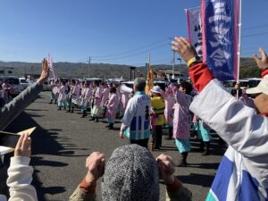 そこへ御柱の三友会が綺麗な法被姿で登場!