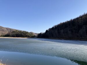 湖は半分凍っていてとても綺麗