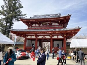 山門の前では