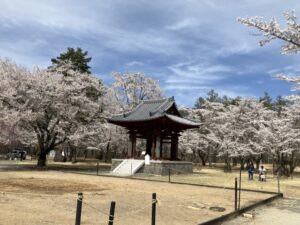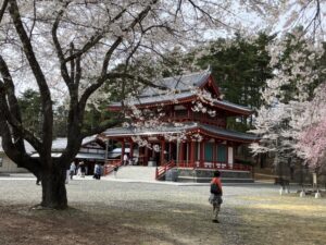 奉納殿からの八ヶ岳と桜